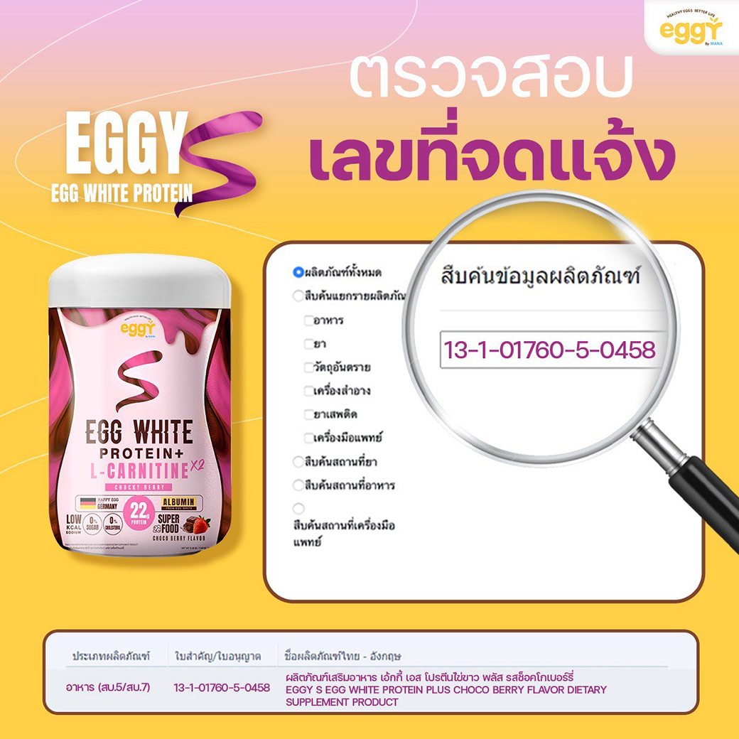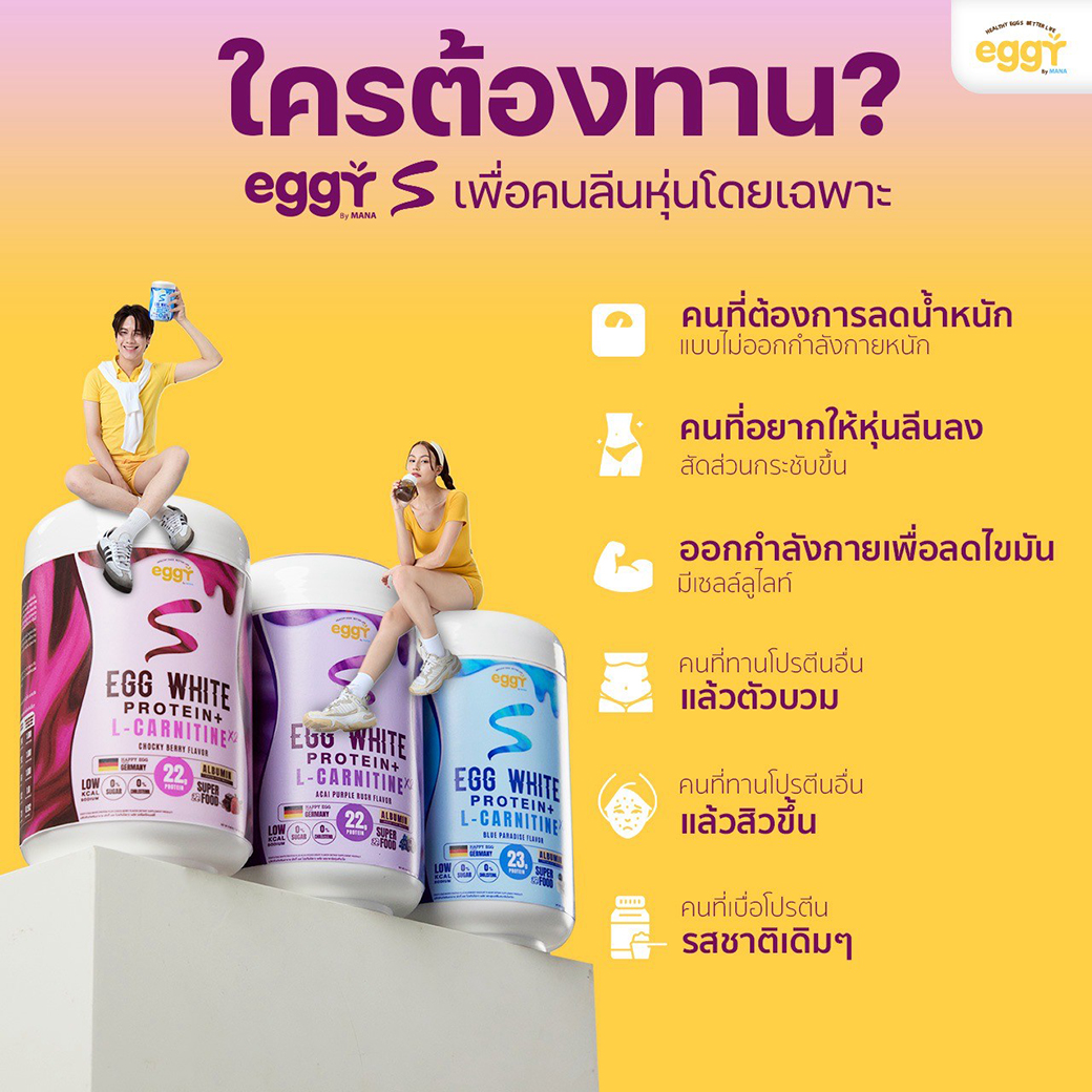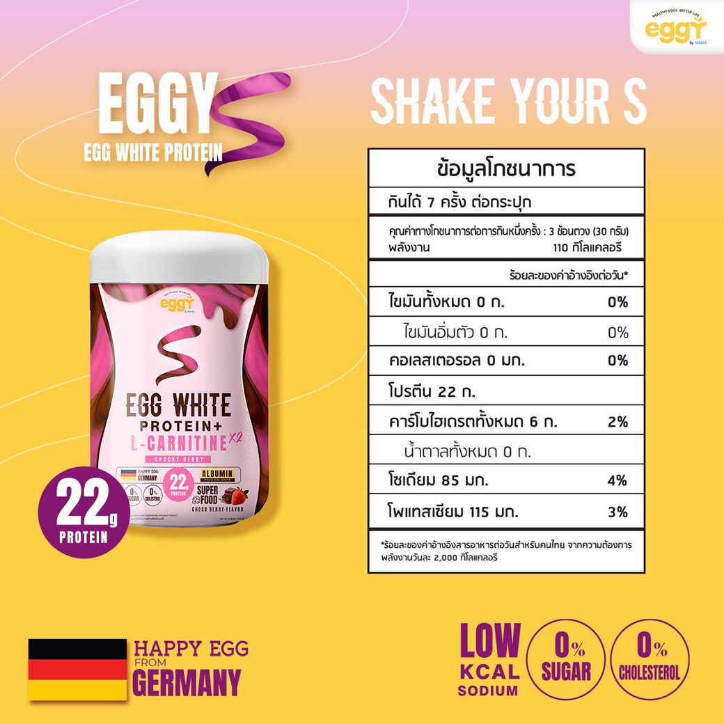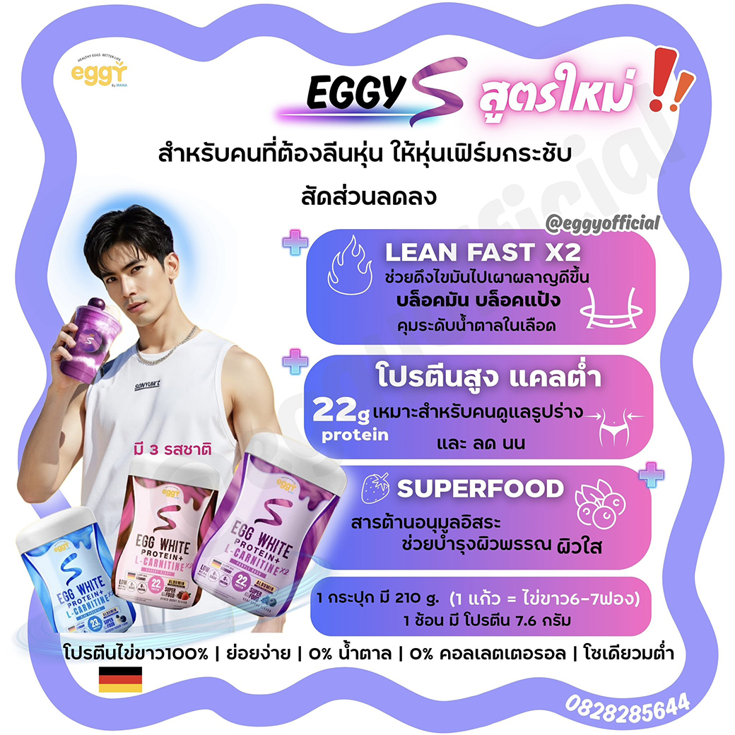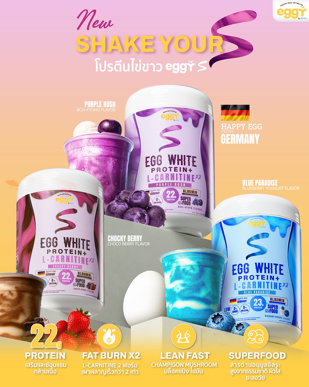 หุ่นดีได้ไม่ยาก ให้ EGGY S เป็นตัวช่วยดูแลรูปร่าง สารสกัดจาก โปรตีนไข่ขาว 100% ย่อยง่าย ไม่มีน้ำตาล ไม่มีคลอเรสเตอรอล แถมมี Superfood ต้านอนุมูลอิสระช่วยให้ผิวพรรณสดใส สุขภาพแข็งแรง