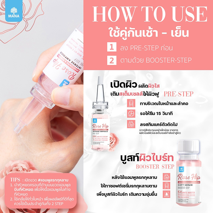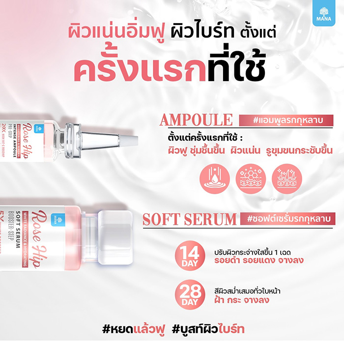 MANA ROSE HIP INTENSE AMPOULE AND SOFT SERUM (มานา โรสฮิปแอมพูล และ ซอฟท์เซรั่มรกกุหลาบ)